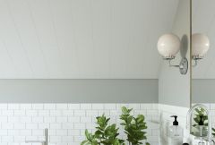 MDF basic plafondpaneel. Voor alle ruimte's geschikt m.u.v. de badkamer. Met een vochtige doek reinigbaar. De panelen zijn voorzien van een vierzijdige veer en groef vebinding en kunnen dus blind genageld worden.